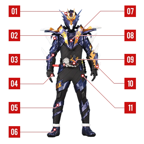 Le dispositif d'explosion intégré dans chaque partie du corps de Kamen Rider Cross-Z.