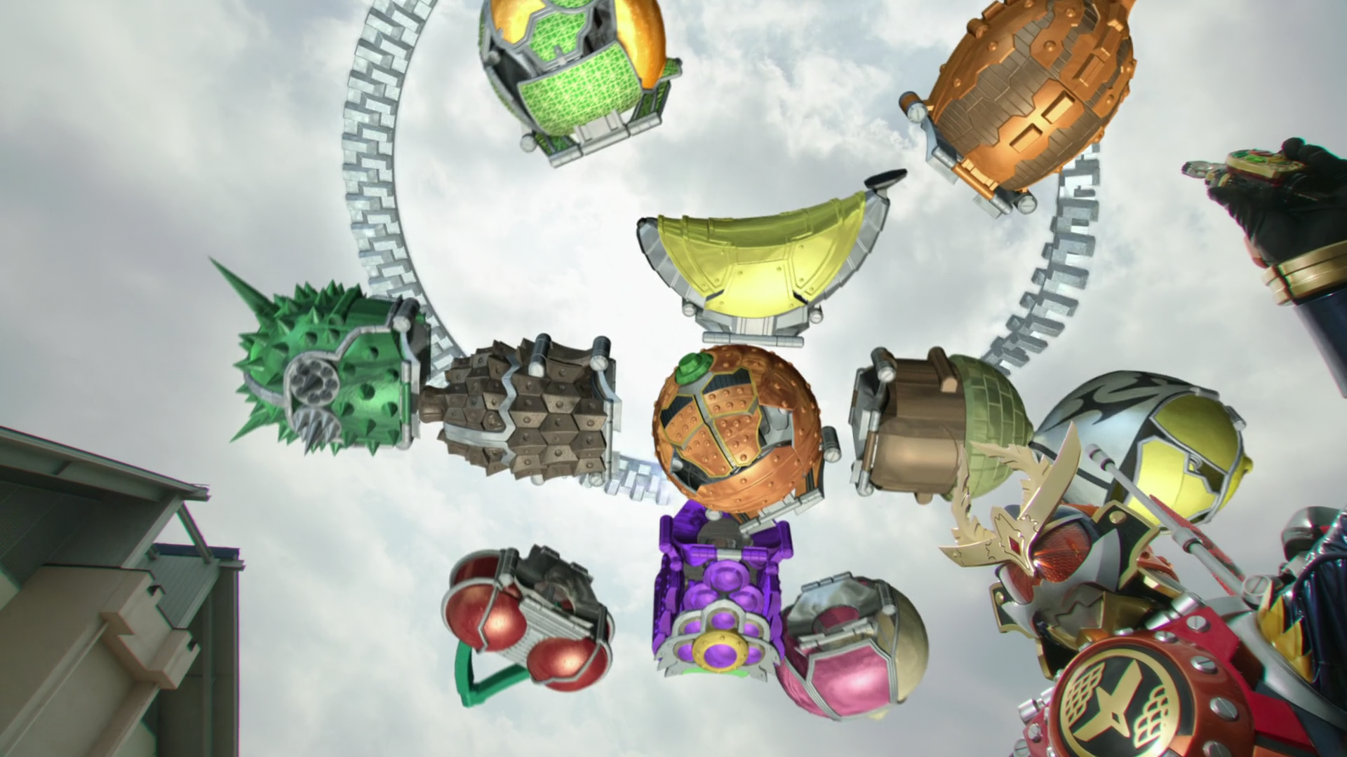 The Arms (アームズ, Āmuzu)[1] are fruit-shaped/nut-shaped form armors that appear when the Armored Riders and Genesis Armored Riders transform. They can be summoned by the Lockseeds.