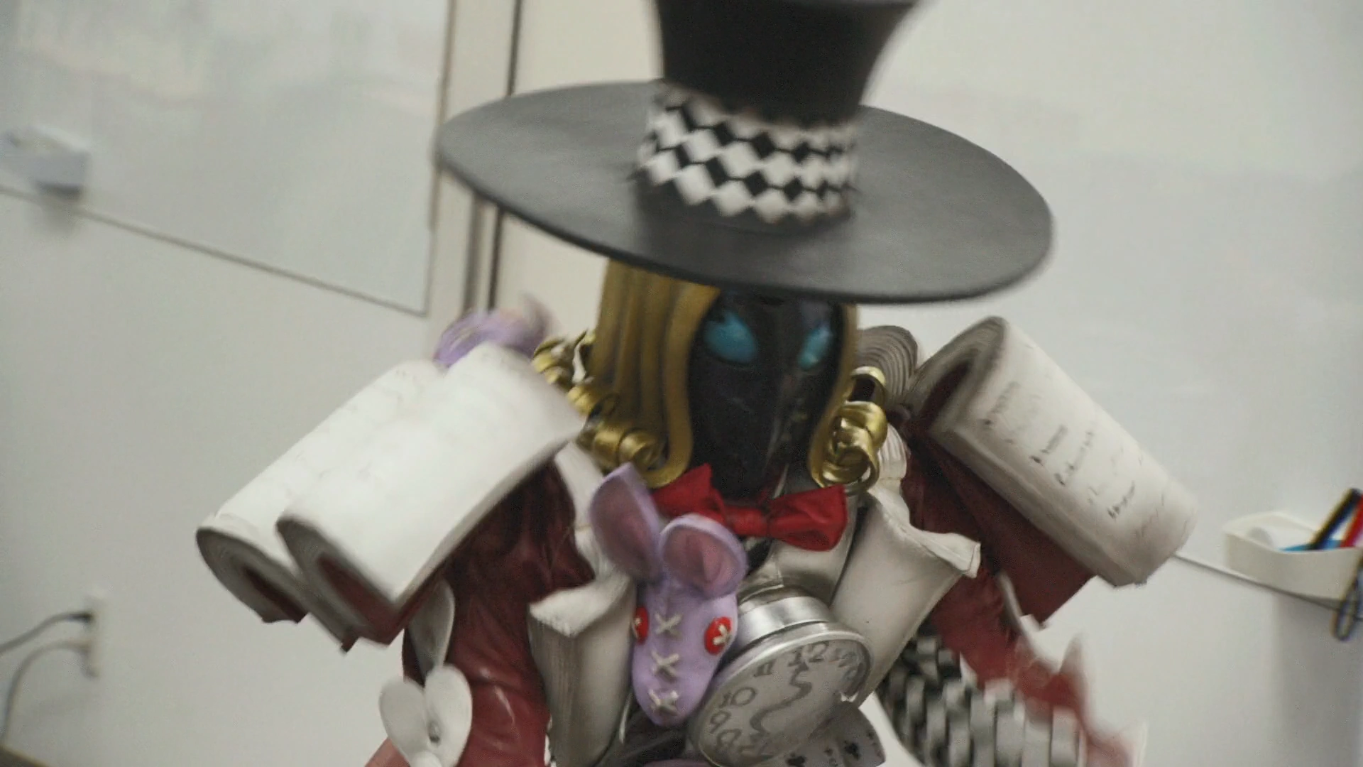 This Eyecon is later seen when Kamen Rider Ghost Robin Damashii used his finisher to defeat Book, falling to the ground from the death of Book's Primal Body, along with a story book (its cover resembles Alice's Adventures Under Ground) that formed from the Gamma's jettisoned Parka Ghost, where it ultimately explodes.