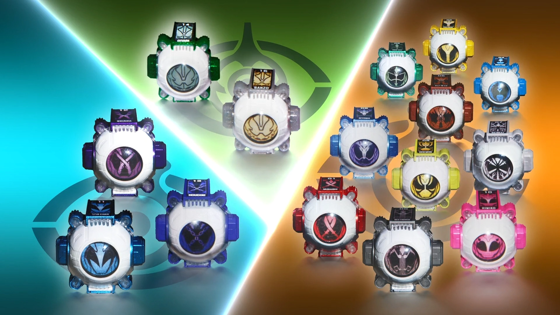 Kamen Rider Ghost's 10 Eyecons, Kamen Rider Specter's 3 Eyecons and Kamen Rider Necrom's 2 Eyecons