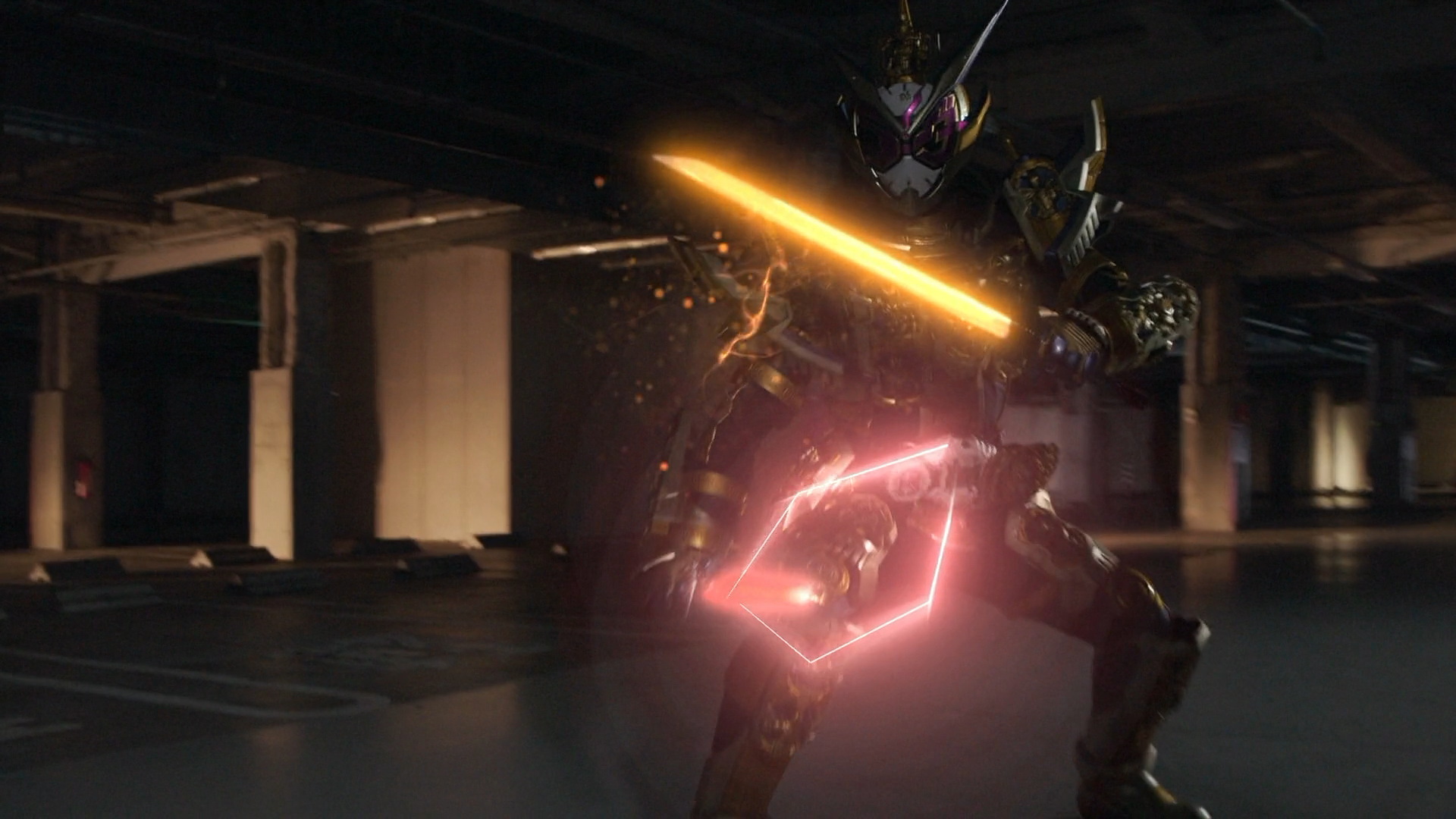 - Aura Sword (オーラソード, Ōra Sōdo): Sword Mode's red blade. When the Rider Pass is pressed against the Den-O Belt, the Aura Sword can be charged with energy and separated from the DenGasher, allowing Den-O to execute the 'Extreme Slash' attack.