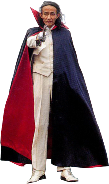 Dr. Shinigami (死神博士, Shinigami Hakase, lit. "Dr. Grim Reaper") is a second-generation executive of the Shocker Japan branch, who took over from Colonel Zol. A genius mad scientist whose staging that emphasizes mysteriousness, such as lighting from below in a dark hideout, is impressive. He is the highest authority in the production of cyborgs who came from the Switzerland branch with the nickname "Master of Monster Creation" (怪人作りの名人, Kaijin-tsukuri no Meijin)[1].