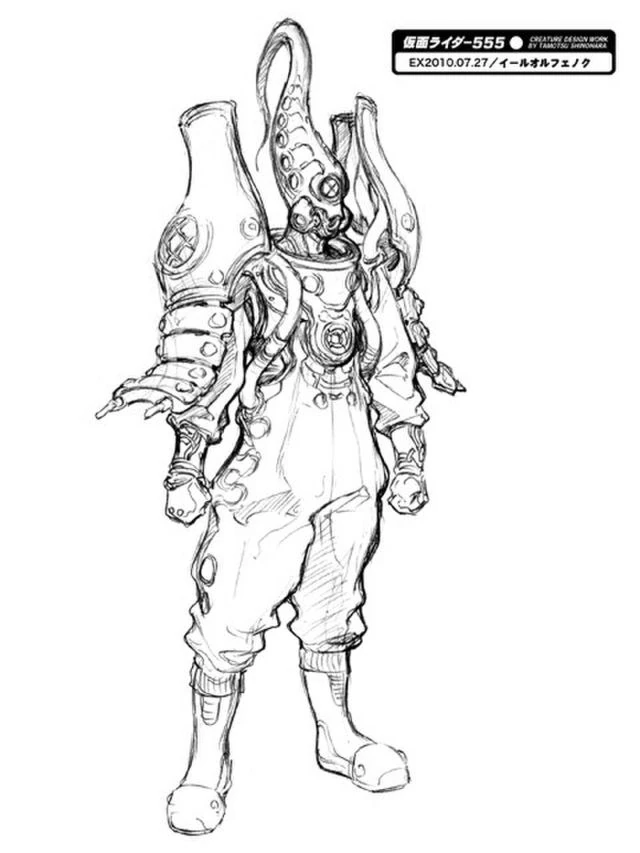 The Eel Orphnoch (イールオルフェノク, Īru Orufenoku) is an unused Orphnoch that its concept art was only posted on Tamotsu Shinohara's Twitter.