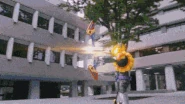 Ice Break (アイスブレイク, Aisu Bureiku): Gavv charges ice energy into his right foot as he goes into his stance. He then jumps into the air as he extends his leg and delivers a powerful kick that freezes the enemy and breaks, destroying them.