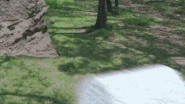 Gavv pushes the Blay Pon and pulls the Blayrigger, before bouncing the Gavvgablade off the Fuwamallow Lung. When it lands, it discharges its energy, gouging a deep hole in the ground.
