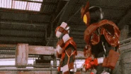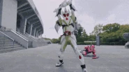 - Rider Kick: Gavv harnesses the energy from the bottles and channels it into his left Kicking Master. As his limb becomes charged with orange and electrifying purple energy, Gavv unleashes a powerful spinning heel kick that sends his opponent soaring into the distance before they explode.