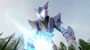 Jelly Roast (ゼリーロースト, Zerī Rōsuto): Vram grabs ahold of his opponent before pulling the Vrastumgear's Fallternator up and pushing it down as he releases blue energy tentacles out of his wrist and covers his hand with them. He then unleashes a flurry of punches at the target, creating red electrical sparks with each hit before ending it with a direct punch to the face, knocking his opponent away and causing them to explode.