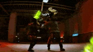 - Another variation has Valen jumping into the air as he delivers a double foot drop kick with both legs coated in orange energy.