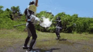 Punchingummy & Kickingummy: Punchingummy Punch (パンチングミパンチ, Panchingumi Panchi) + Kickingummy Kick (キッキングミキック, Kikkingumi Kikku): Gavv charges the Range Kicking and Shuwa Punching with large energy particles. First, Gavv releases the energy output from both enhancements, then stomps on the ground to disperse the built-up energy in the Range Kicking, which causes the enemy to be hurled into the air. While in the air, Gavv gathers energy and delivers a dispersive energy blow from the Shuwa Punching.