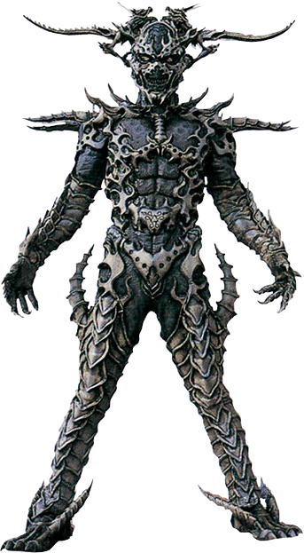 Genda's original form, Demon-Human Mode (魔人態, Majin-tai) has a proficiency in speed and agility, but was outmatched by Decade Blade's Attack Ride: Blade Mach.