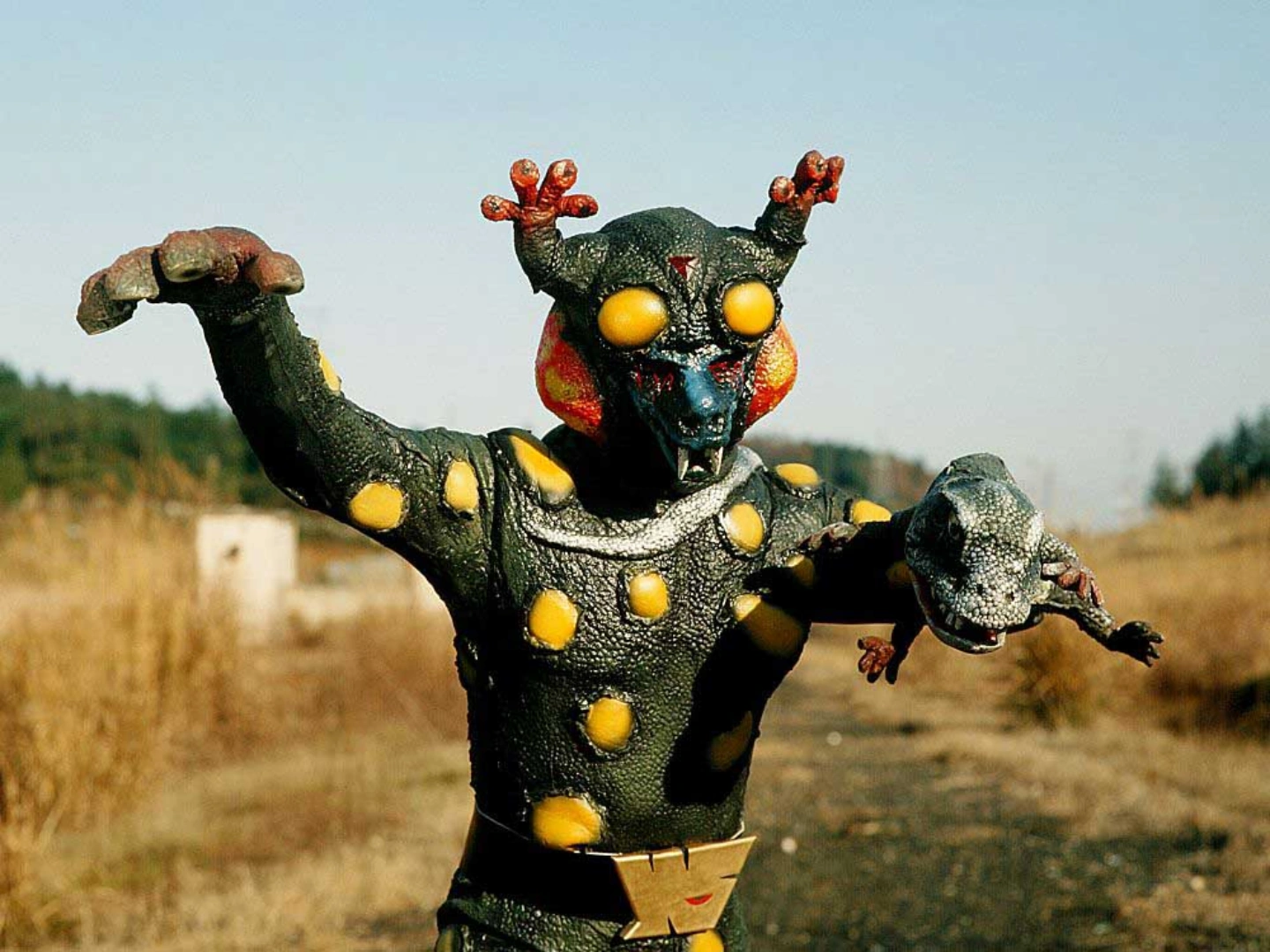 General Monster was portrayed by Shinzo Hotta (堀田 真三, Hotta Shinzō), who previously portrayed Ken Nomoto (Tokageron) in episode 13 of Kamen Rider, the original series, and Great General Darkness in the TV special, All Together! Seven Kamen Riders!!.
