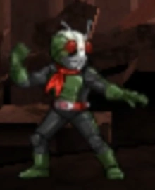 Kamen Rider 2 appears as a playable character among other Kamen Riders in the game, performing his Rider Kick All Kamen Rider: Rider Revolution.