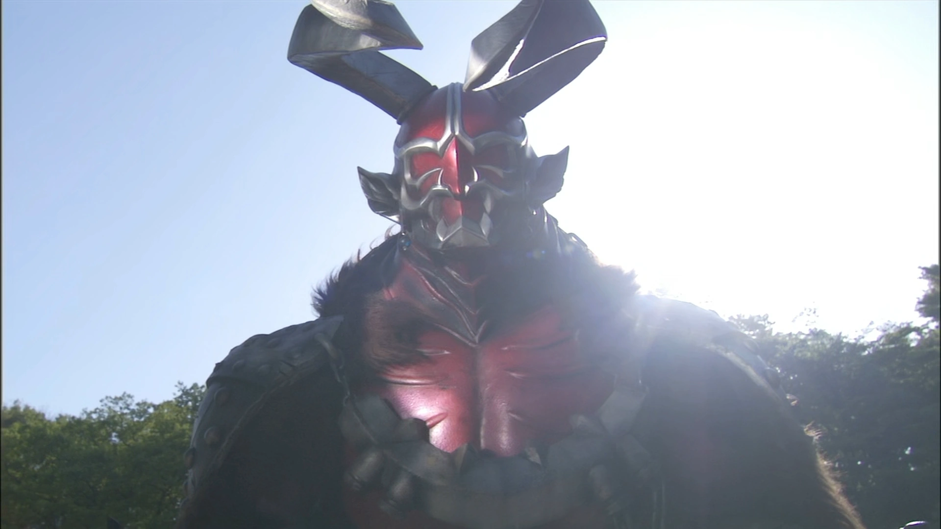 Hibiki is seen assuming his default Oni form before becoming Gyuki. It is unknown if he ever accessed the Hibiki Kurenai (響鬼 紅, Hibiki Kurenai) or Armed Hibiki (装甲響鬼, Āmudo Hibiki) forms during his career as an Oni as did his original counterpart.