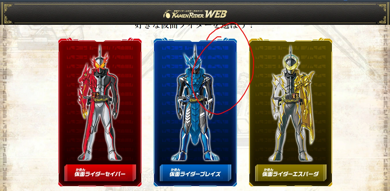 - Before the season's premiere, Blades' Rider name was originally mistaken to be Kamen Rider Blaze, in part due to the transliteration of the katakana. Oddly enough, even in the season's run, there have been instances in promotional material where the "Blaze" mistranslation is still present.[15]