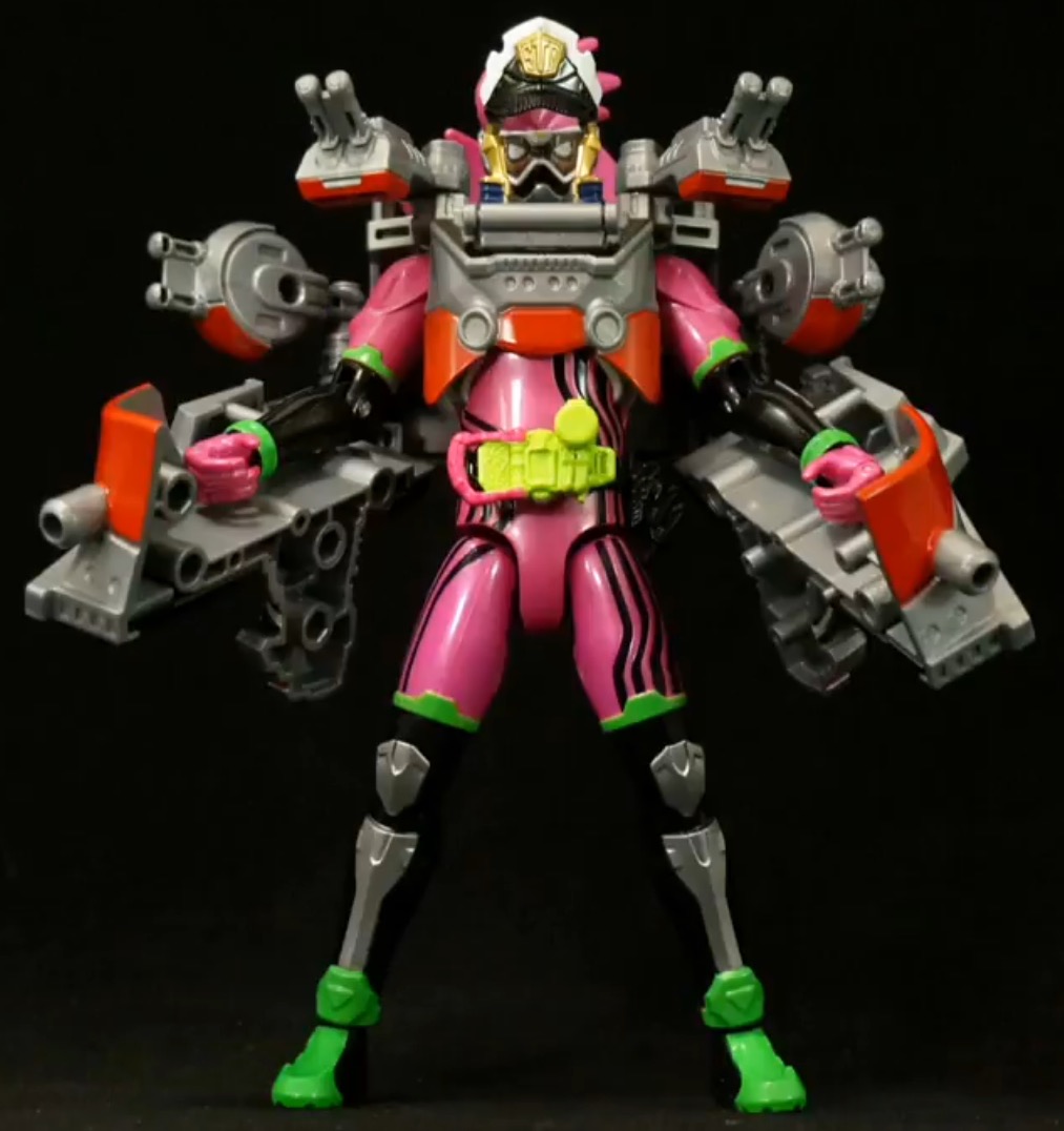 This form is extremely agile, capable of rolling, somersaulting, and bouncing off of walls, utilizing the chocolate blocks generated by Mighty Action X. It is used to battle Bugster-infected humans and is the only way to separate the Bugster from its host, due to this form housing inbuilt Pulse Splitter (パルスプリッター, Parusupurittā) pulse generators that can split a Bugster from a human.