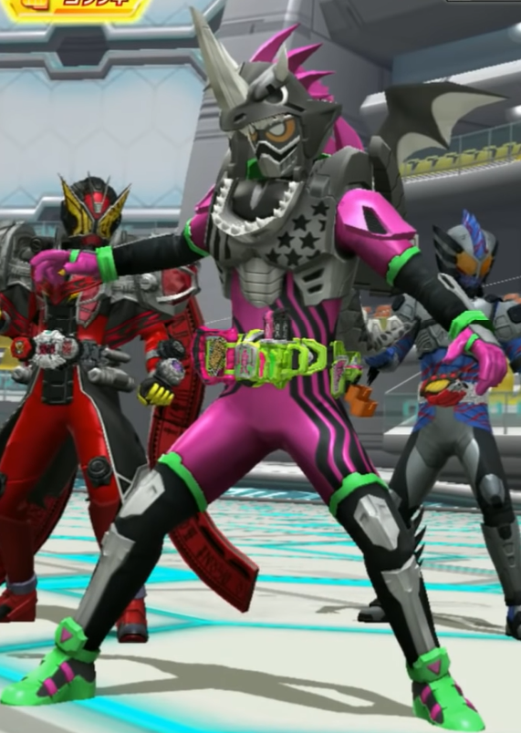 - Kamen Rider Ex-Aid (仮面ライダーエグゼイド, Kamen Raidā Eguzeido): Used with Kamen Rider Hibiki to access Taiko Gamer.