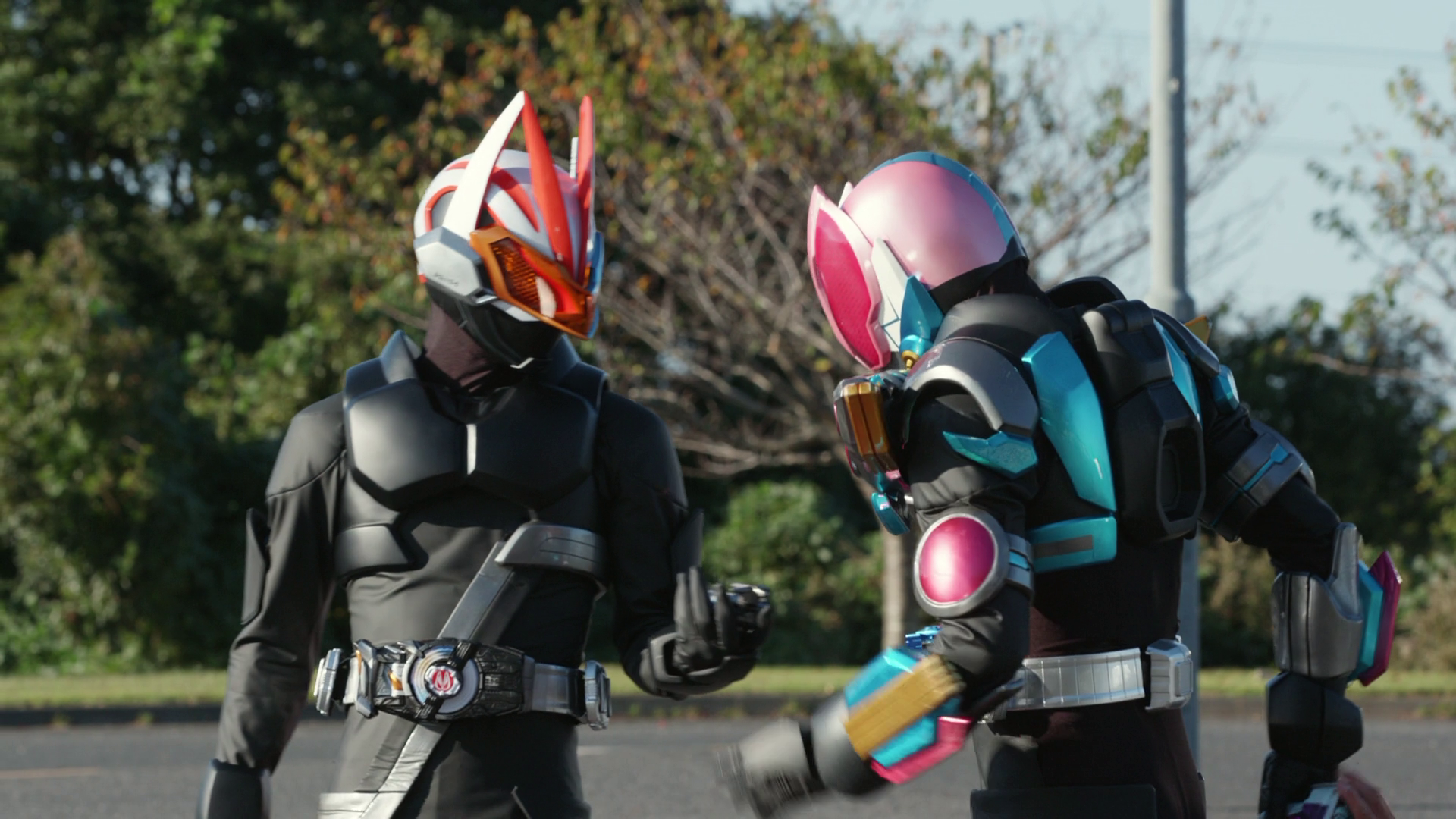 - Kamen Rider Geats: The film takes place between episodes 15 and 16.[note 1] The events of the movie are acknowledged in episodes 17, 34, and the Hyper Battle DVD.