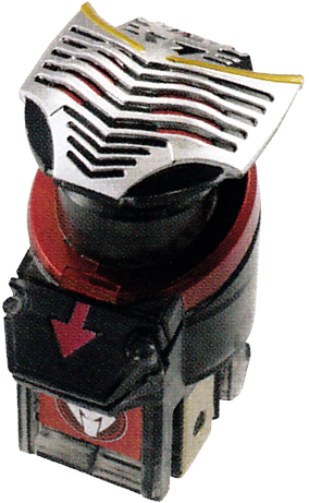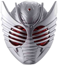 - Solid Face Shield (ソリッドフェイスシールド, Soriddo Feisu Shīrudo): A face protector made of special material Armetal (アーメタル, Āmetaru). It has a hardness that can withstand any impact, absorbs the impact almost completely, and protects the wearer inside. It also plays the role of a purification device that neutralizes dangerous substances in the air such as poisonous gas. Ryuki’s has a dragon mustache-like decoration at the top connected to DragCrown. In the S.I.C. toyline, this part is removable, revealing Red Eye more clearly.