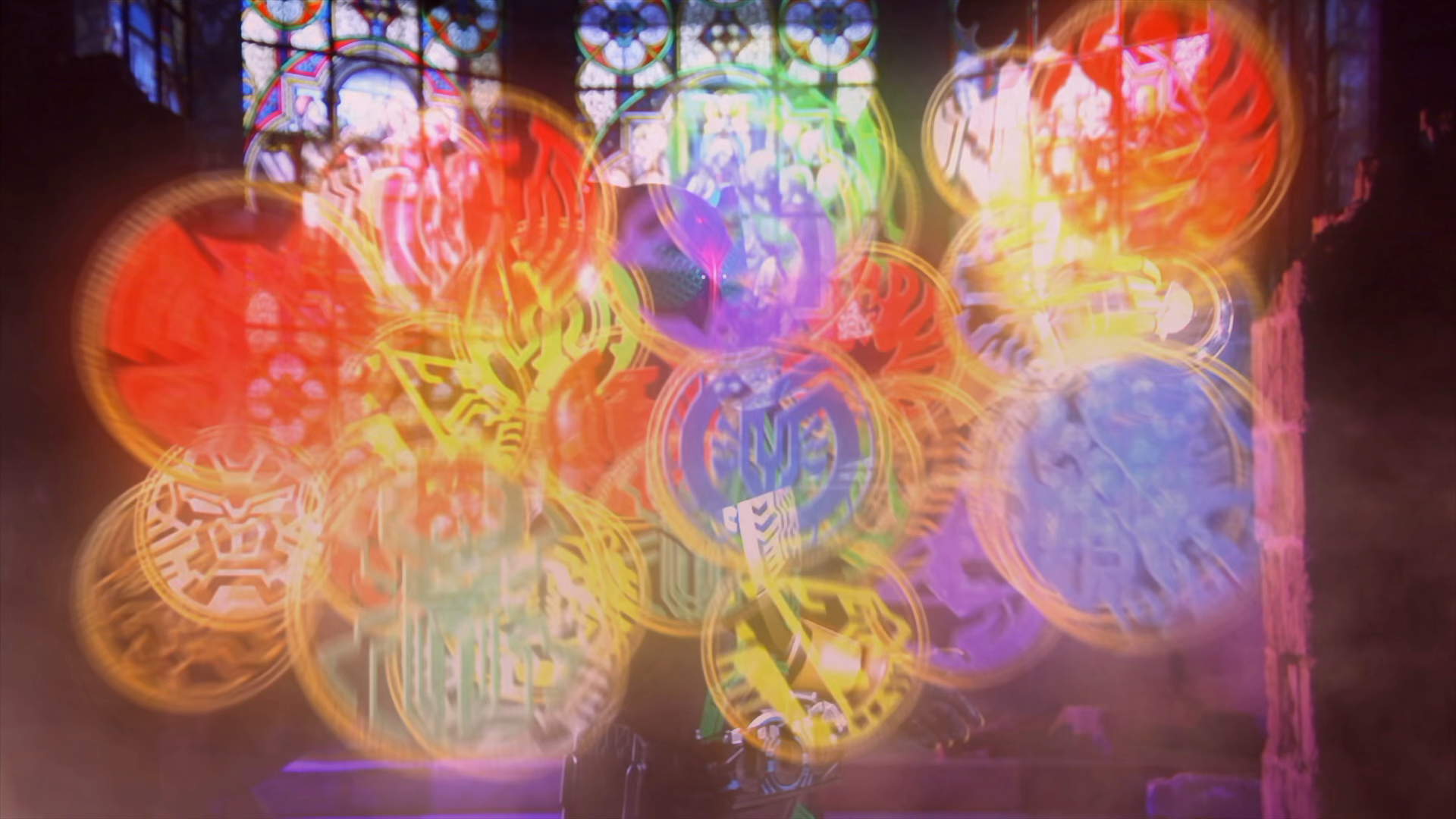 This Combo's Scanning Charge finisher is the Gouache Cross (ガッシュクロス, Gasshu Kurosu), which projects three yellow rings in front of OOO before charging through them with the Cheetah Medal's speed before delivering a cross slash on the target with the Toraclaws infused with the Lion Medal's energy projection.