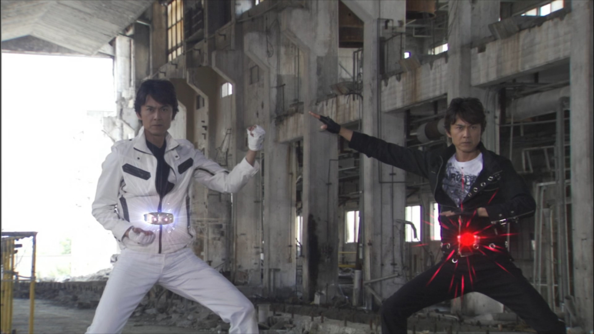 Facing Apollogeist (A.R.), Kotaro challenges him to a duel, both sides agreeing to fight without help. Fiercely clashing against one another, Kotaro proves himself the stronger combatant and deflects Apollogeist (A.R.)'s shield strike, stabbing him in the process. In desperation, Apollogeist (A.R.) summons the Rhinoceros Mutant to attack Kotaro. Witnessing Apollogeist (A.R.) go against his word, the other Kotaro assists his counterpart by destroying the Rhinoceros Mutant. The situation to their advantage, the two Riders use their Double Rider Kick on Apollogeist (A.R.), turning him back into his human form. Defeated, Apollogeist (A.R.) swears vengeance before escaping into an alternate world.