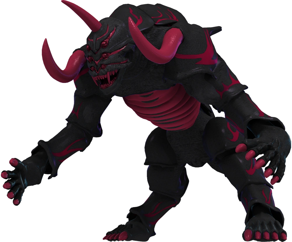 Gigandeath Hell (ギガンデスヘル, Gigandesu Heru) is a terrestrial Gigandeath, Hell combines the elements of an ox, an elephant, and a large cat. It possesses great speed, a thick hide, tusks, and a forehead horn.