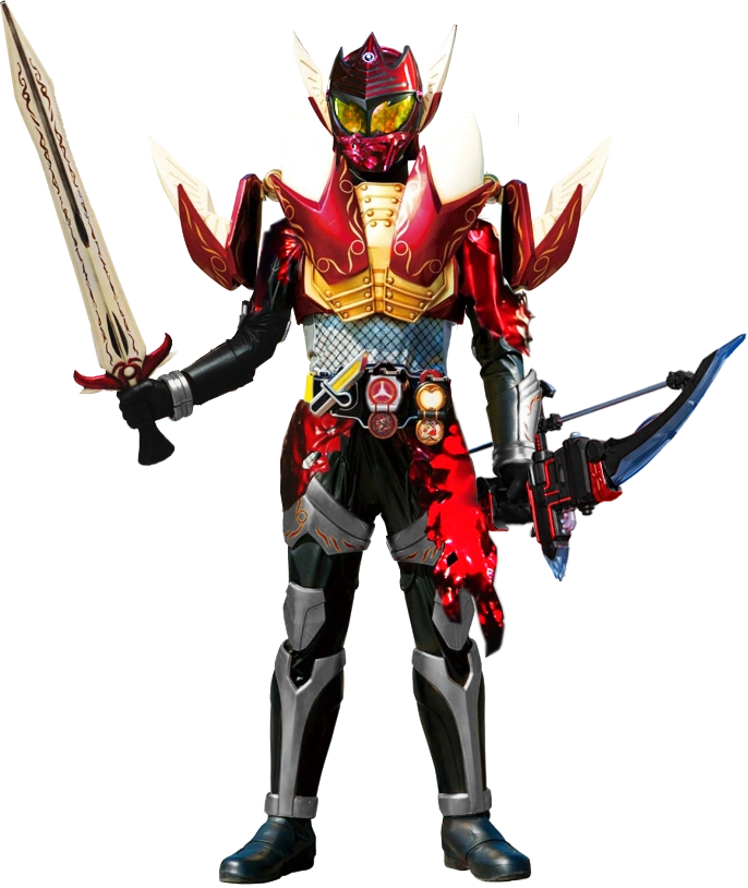 Golden Arms (ゴールデンアームズ, Gōruden Āmuzu) is Saver's golden apple-based form, that is accessed through the Golden Ringo Lockseed. Golden Arms is normally used by Kamen Rider Mars.