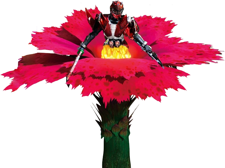 Blood Zakuro Arms (ブラッドザクロアームズ, Buraddo Zakuro Āmuzu, lit. "Blood Pomegranate Arms") is Saver's pomegranate-based default form that is accessed through the simultaneous use of the Zakuro Lockseed and Blood Orange Lockseed with the Genesis Core replacing his Sengoku Driver's Rider Indicator.