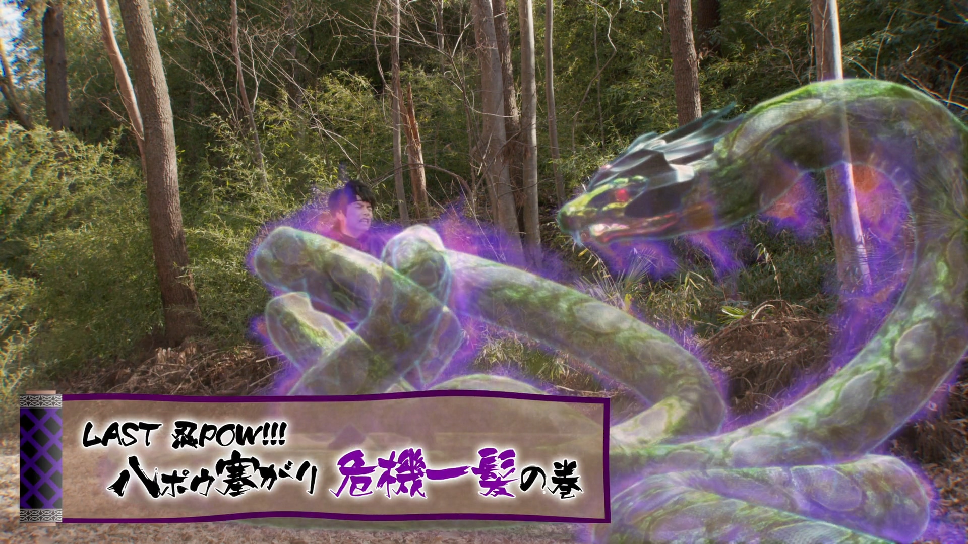 Last NinPow!!! Volume: Dead-end and Close Call (LAST忍POW!!! 八ポウ塞がり危機一髪の巻, Last Ninpō!!! Hachipō Fusagari Kikiippatsu no Maki) is the third and final episode of Rider Time: Kamen Rider Shinobi.