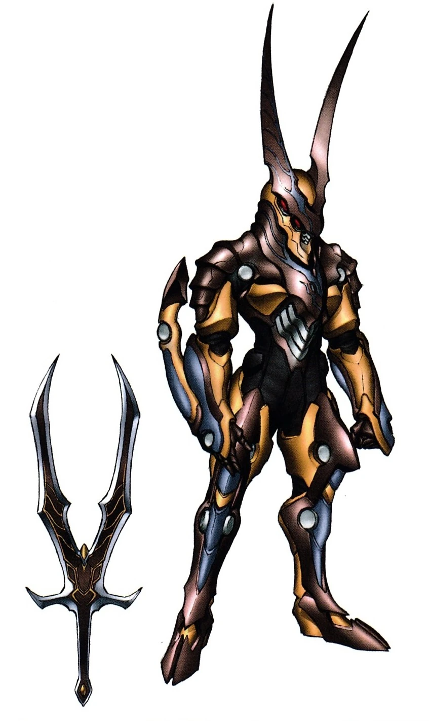A blue and yellow type of Zelle that devoured a school teacher before Ren could stop it, making it personal. Knight destroys the monster with his Hishou Zan, and is absorbed by Darkwing. In addition to their superhuman speed they were equipped with a forked sword.