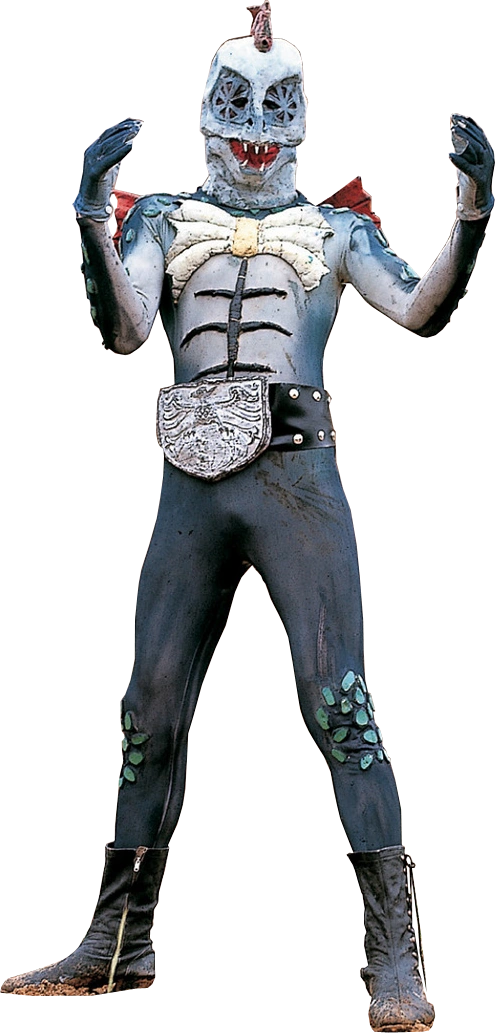 Pirazaurus is one of several Shocker and Gel Shocker monsters that appear in the PlayStation Kamen Rider video game. They are fought by the player in the "Kamen Rider Story". In the "Shocker Story" players play as Shocker commanders which must defeat enemy Shocker commanders. If the player successfully passes the 8th round, the player's Shocker commander turns into Saikyō Kaijin (最強怪人) which is stronger and has a different appearance from the original form. The player can then upgrade punching power, kicking power or both or can summon 6 Combatmen to aid them. the player then must defeat Kamen Rider 1 before facing Kamen Rider 2.