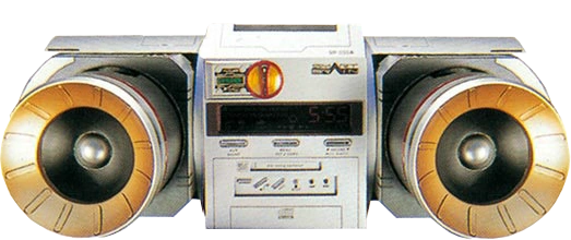 The SB-555A Faiz Sounder (SB-555A ファイズサウンダー, SB-555A Faizu Saundā), is a weapon exclusively used in the Kamen Rider 555: Hyper Battle Video. It resembles an everyday ordinary boombox radio when not in use, but when Faiz's Mission Memory is inserted, it transforms into twin cannons that fire a powerful sonic blast, which can destroy an Orphnoch. A silhouette of the Faiz Sounder appears on the Music app icon on the NEXT Faiz, NEXT Kaixa, and Muez Phones.