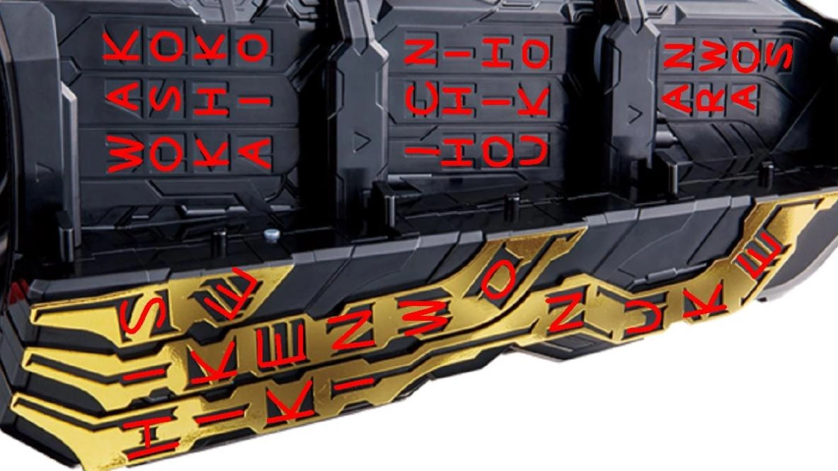 Seiken Swordriver Buckle (聖剣ソードライバーバックル, Seiken Sōdoraibā Bakkuru): Allows any of the Geats Riders to access Saber Form, which is equipped with Kaenken Rekka. It is based on Kamen Rider Saber and his transformation belt, the Seiken Swordriver.[6]