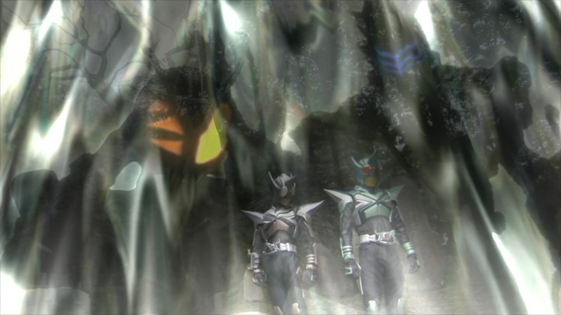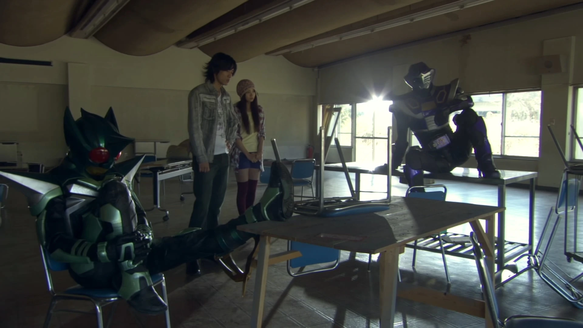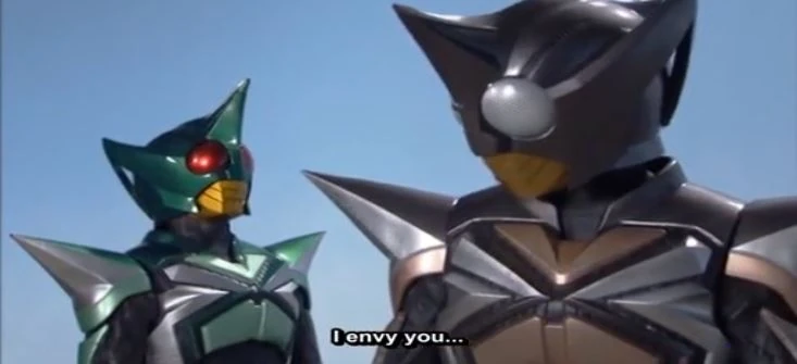 Kamen Rider KickHopper who was behind his partner PunchHopper tells him that he envies him and that he is someone worthless immersed in the depths of hell.