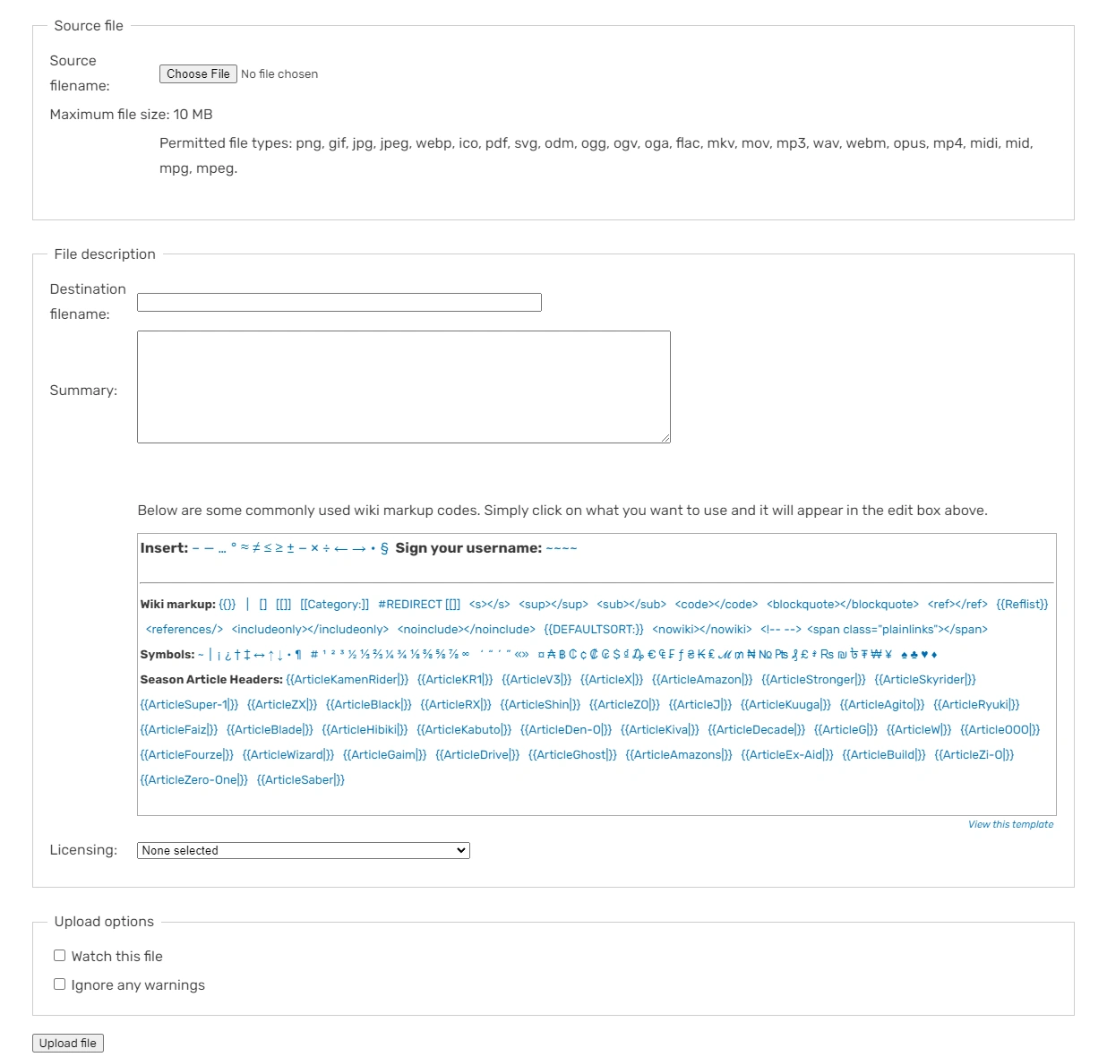 Use only the images which have been made available by publishers on public domain, such as social media sites. Such images come under Fair Use laws. Images from official websites should be used only when they are clearly made available for distribution. While uploading such images, file descriptions should contain acknowledgement of the source (such as {{CopyrightToei}}) in the file description. Images unavailable for distribution should not be derived from the website even through source code as doing so may violate copyright.