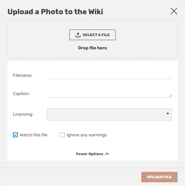Please ensure that if you upload an image while editing a page, that you add the appropriate attribution template. Click on more options, then choose an option from the Licensing list that appears. When you select a licensing template, a preview of it will appear. This template will appear on the file information page.