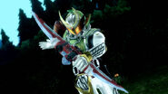 Kugai demonstrates to Ryoma that he is the final task he must overcome, utilizing a Genesis Core Unit as an extension of his Sengoku Driver with his Zakuro Lockseed modified to summon a variant of the Sonic Arrow called the Saver Arrow. Initially gaining the upper hand, fighting Duke and Zangetsu as he can overpower them one on one, he is defeated by their combined efforts.