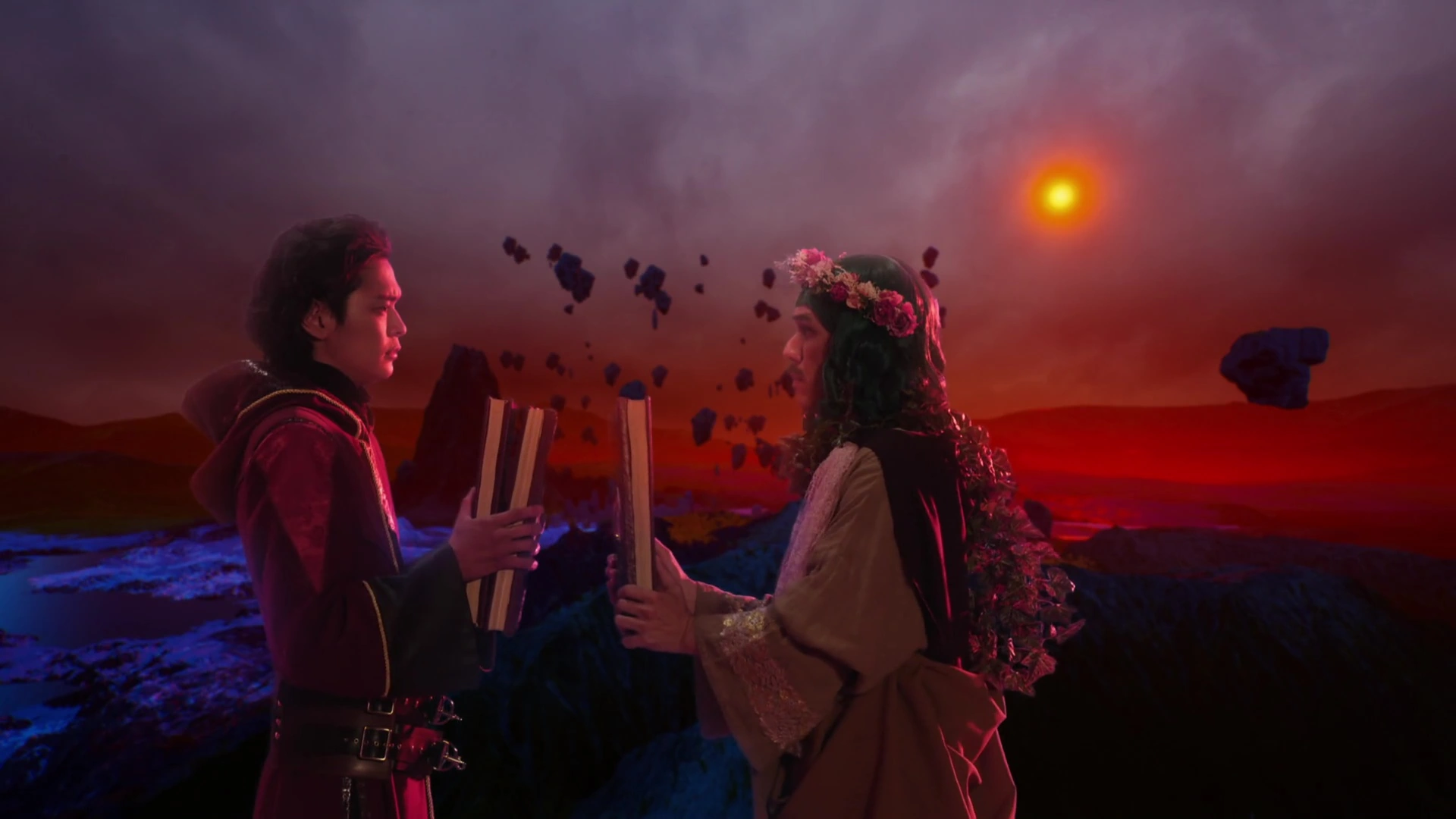 After Yuri was free from his duties in Avalon, Tassel reunited with his old ally from over a thousand years. In one night in particular, Tassel left his residence and Wonder World and arrived back on Earth where he and Yuri observe Touma holding Kento Fukamiya in his arms as he collapsed from his battle with Calibur.