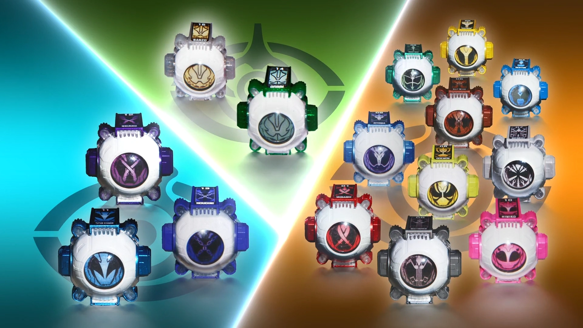 Kamen Rider Ghost's 10 Eyecons, Kamen Rider Specter's 3 Eyecons and Kamen Rider Necrom's 2 Eyecons
