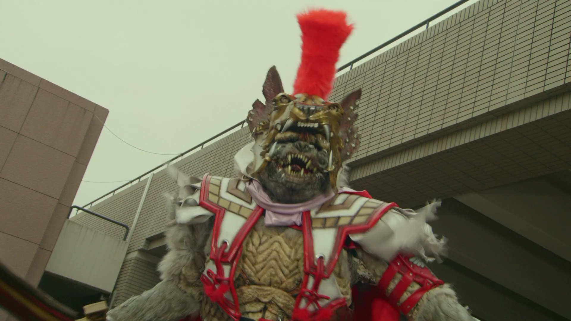 Urga first appears following the destruction of Shocker's Yamaarashi-Roid, and thus the thwarting of Shocker's plot to revive Jigoku Taishi, at the hands of Kamen Rider Ghost. Watching Takeru from a distance, Urga scoffs at the organization seeing it as outdated and obsolete, he once adhered to and vows to give rise to the new Shocker. At this point, he is still considered as a "Former Shocker" (元ショッカー, Moto Shokkā). [Appearance! The Mysterious Warrior!]