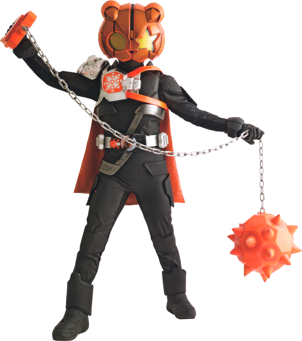 - PunkJack's helmet is an orange version of the bear helmet used by Kamen Riders Shirowe and Da·Paan, though it features a combination of Shirowe's right circle eye and Da·Paan's ears.